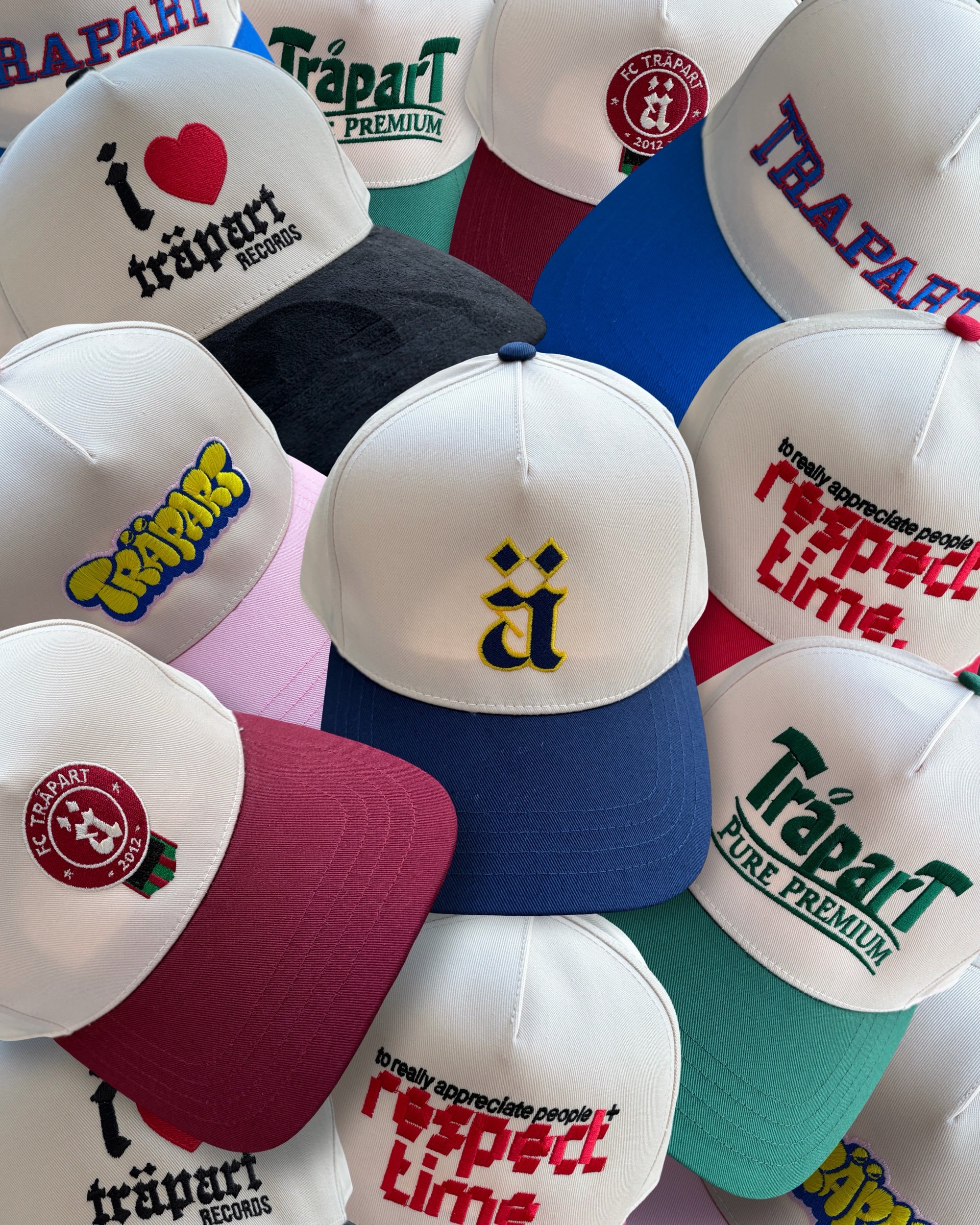 STORE › TRAPART Snap Caps Image 1 of 1 TRAPART Snap Caps $32.00 Choose Color & Style Style & Color: Tropicana Green ä Michigan Navy & Yellow I Love Trapart Black Varsity Royal Blue Respect Time Red Football Club Burgundy Purchase Added! Choose Color & Style